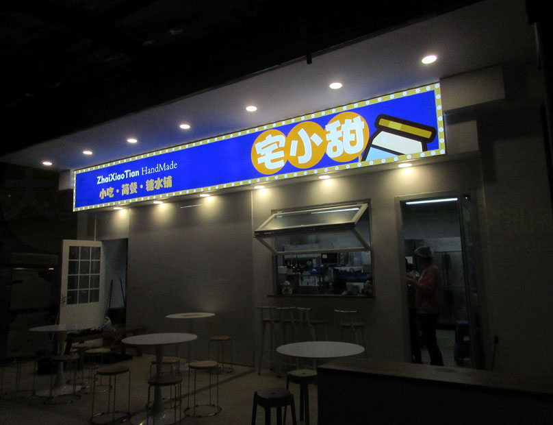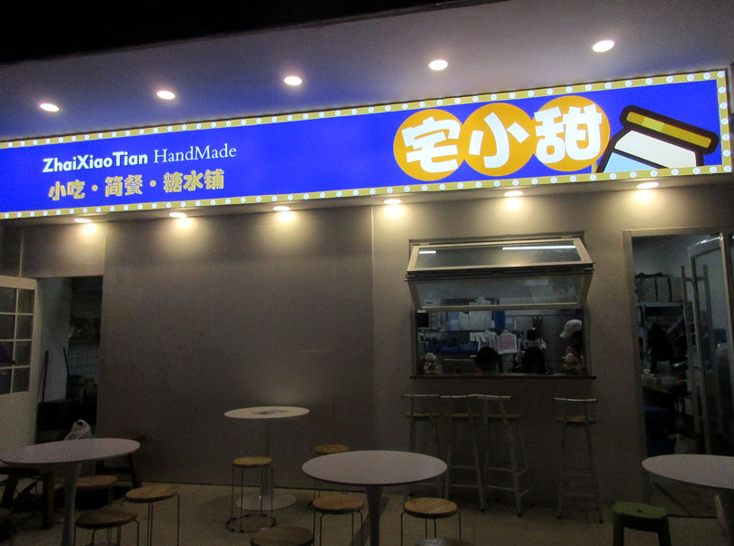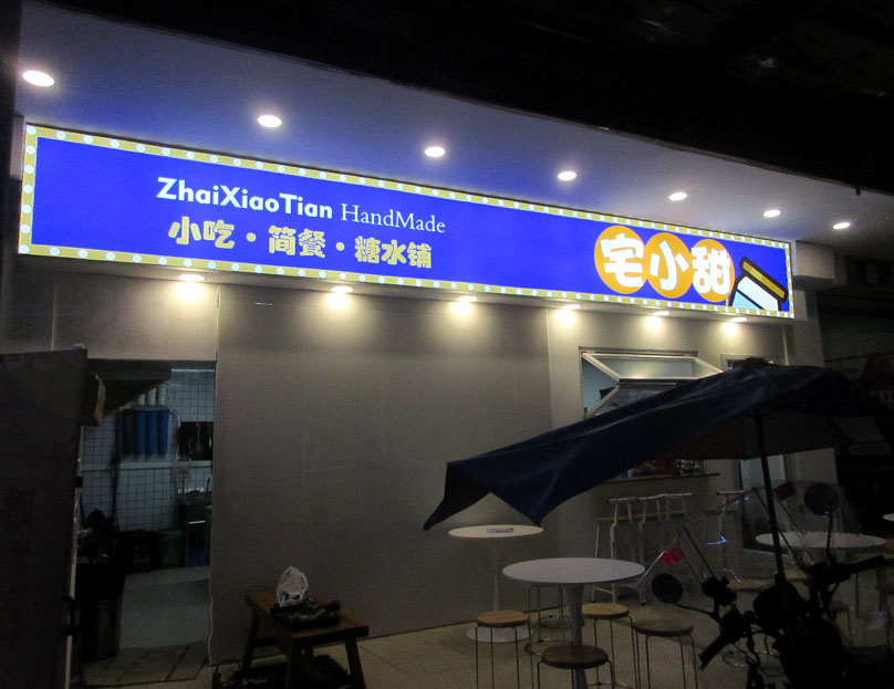 贝岗商业城一楼南外列偏东 新装开的这家店是叫宅小甜 留意到商业城北列也是偏东大概位置就一直也早就有一个也是宅小甜,所以应该是同一家店,北侧老的那家看着应该是只做外卖外送的,因为空间有限没做到店,现在南侧新开的这家店面也是相对大一些,而且是有到店用餐区的 宅小甜,顾名思义,是专门做简餐糖水甜品的