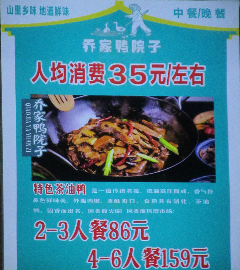 贝岗商业城东外列临路边 新开店-乔家鸭院子 人均消费35元左右 特色茶油鸭2-3人餐86元,4-6人餐159元 推荐菜品-乡里谷鸭,田螺排骨,鱼籽鱼泡火锅,铁板鲫鱼 | ||||||
