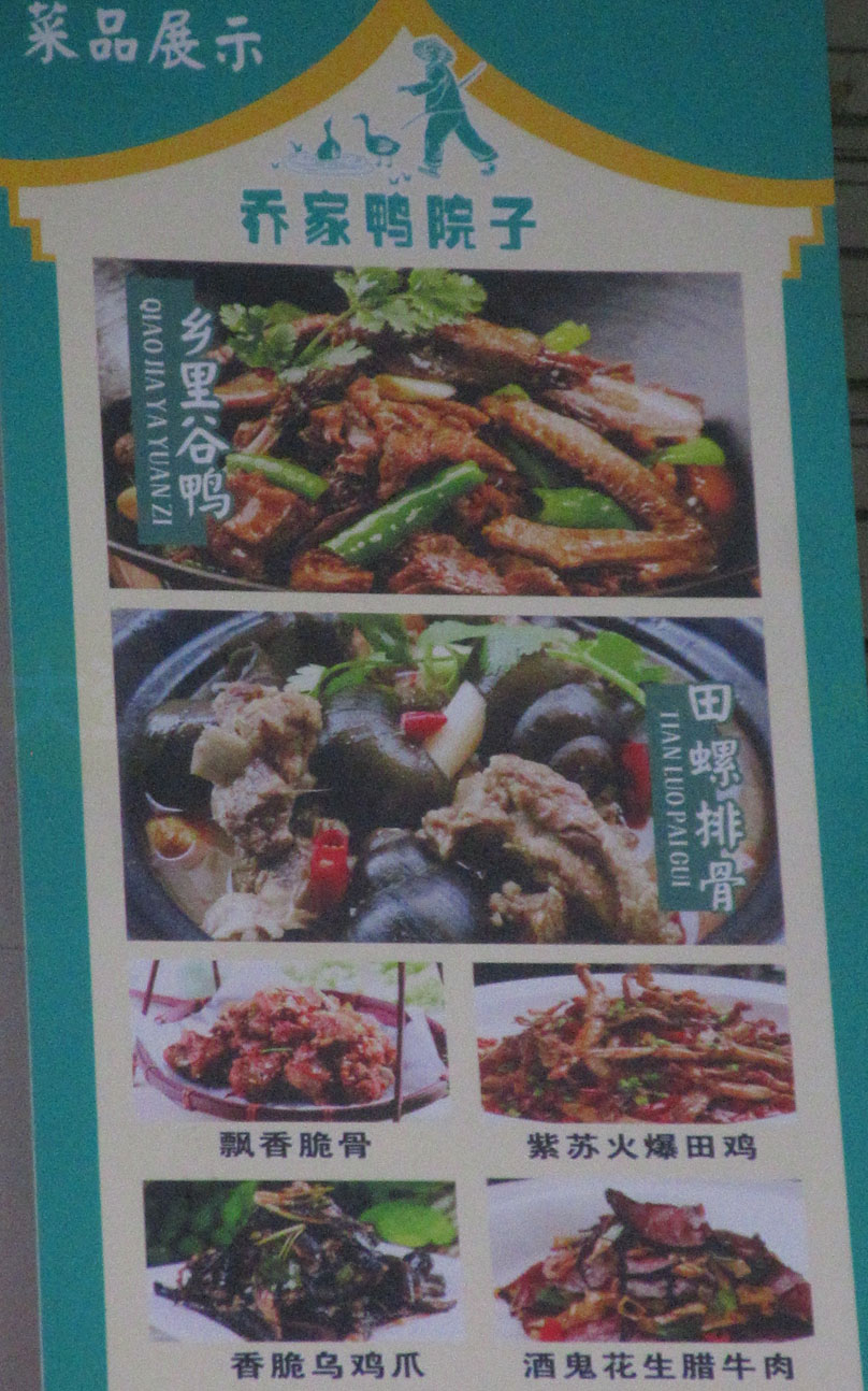 贝岗商业城东外列临路边 新开店-乔家鸭院子 人均消费35元左右 特色茶油鸭2-3人餐86元,4-6人餐159元 推荐菜品-乡里谷鸭,田螺排骨,鱼籽鱼泡火锅,铁板鲫鱼