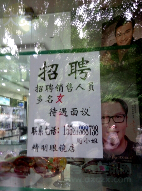 贝南大街-精明眼镜-招聘销售人员多名(女) 待遇面议 联系电话:15521388738周小姐