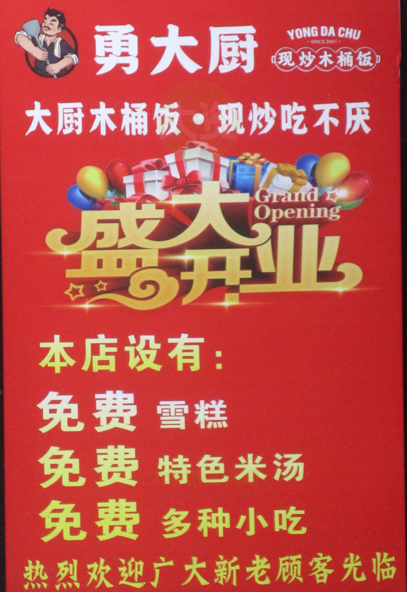 北亭东道/博凌大街南 近日看到也同样开了一家叫勇大厨的餐饮店/餐厅/饭馆 | ||||||