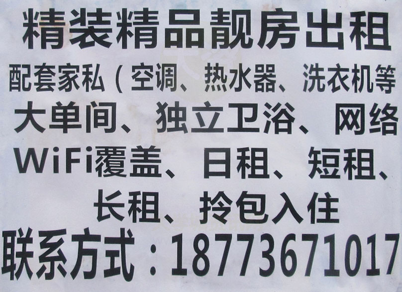 北亭村-精装精品靓房出租 配套空调热水器洗衣机等 大单间 独立卫浴 网络WiFi 日租短租长租 拎包入住 联系18773671017 |