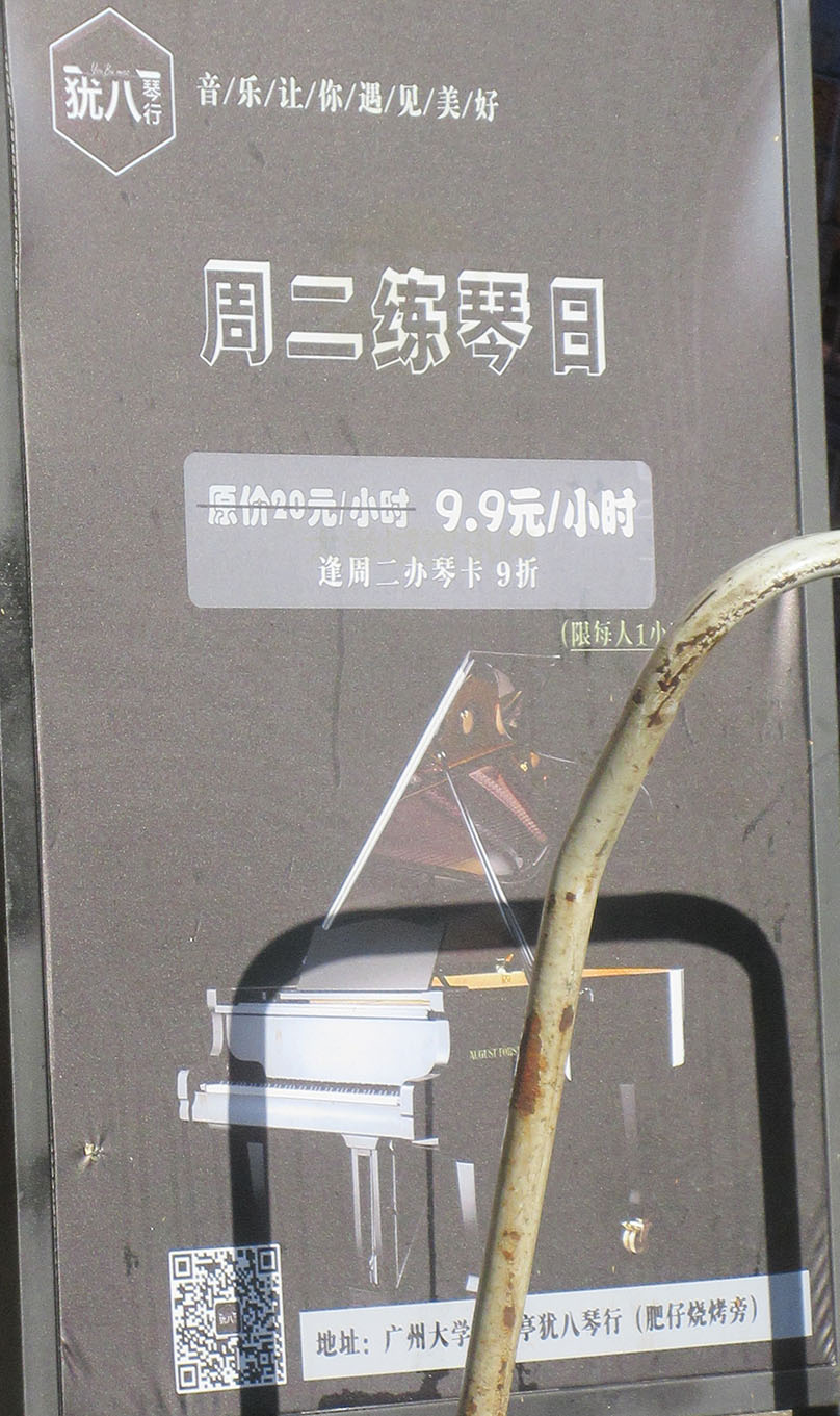 北亭星光下道东近中环&肥仔烧烤旁入 犹八琴行 周二练琴日 9.9元/小时原价20元 限每人1小时 办琴卡9折 | ||||||