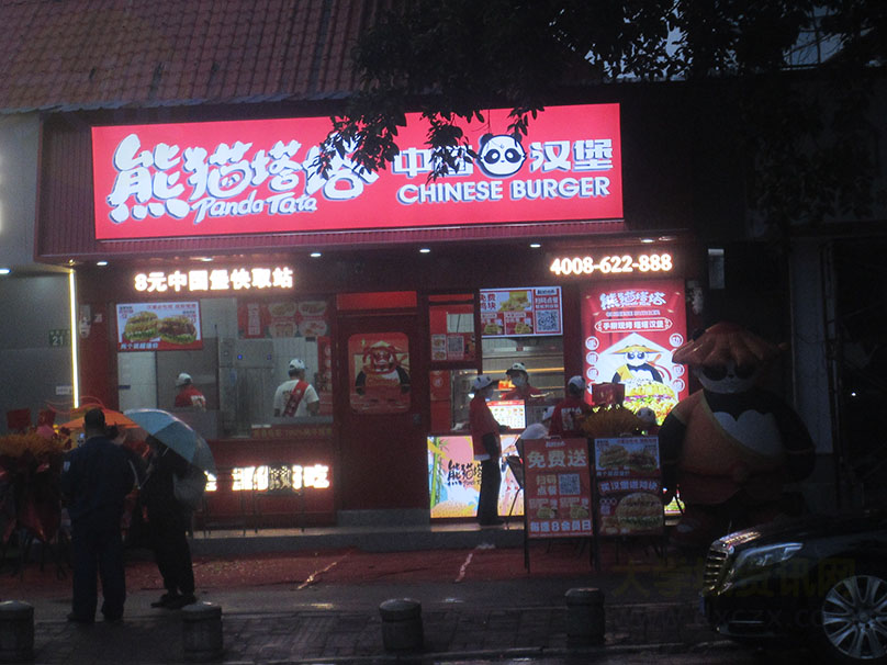 北亭临中环村口 今天新开张了一家专卖汉堡店 叫熊猫塔塔 开业期间,有充值免费送套餐活动 香辣鸡腿&板烧鸡腿2个装超值价12元 买汉堡免费送鸡块