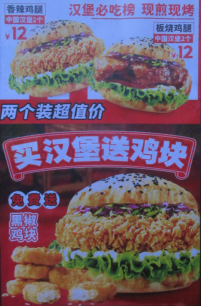 北亭临中环村口 今天新开张了一家专卖汉堡店 叫熊猫塔塔 开业期间,有充值免费送套餐活动 香辣鸡腿&板烧鸡腿2个装超值价12元 买汉堡免费送鸡块 | ||||||