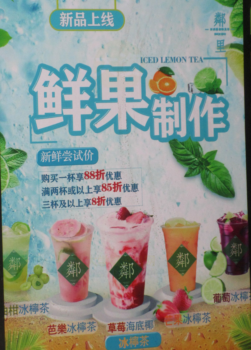 T8栋西外列中北 鄰里柠檬茶 冰柠茶系列新品上线 鲜果制作 尝鲜价优惠-第一杯8.8折 满两杯及以上8.5折 | ||||||