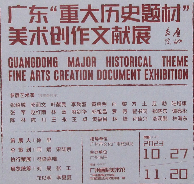 中心区西北&近华师内环路 文学艺术创作中心 看到说有个 广东重大历史题材美术创作文献展出 展期是2023.10.27-11.20 具体在文创中心一楼-广州画院美术馆