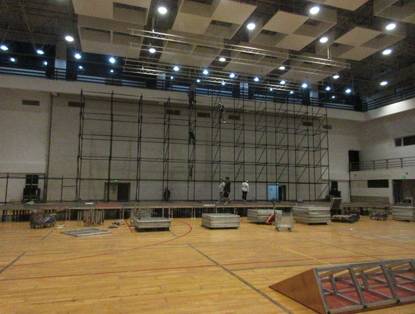 广美70周年校庆主会场-大学城校区体育馆内外 傍晚时分还在加紧布场中 | ||||||