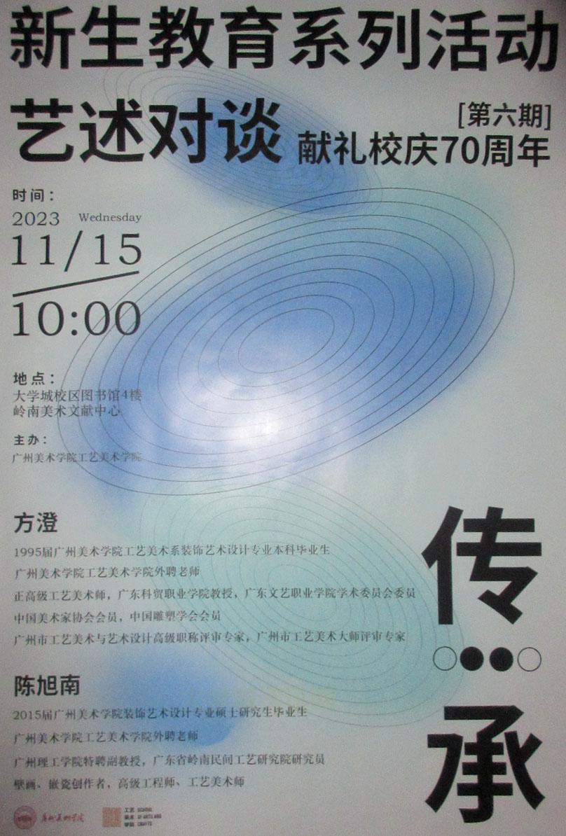 广美-工艺美术学院-新生教育系列活动 艺述对谈 2023.11.15周三上午10点 图书馆4楼-岭南美术文献中心 | ||||||