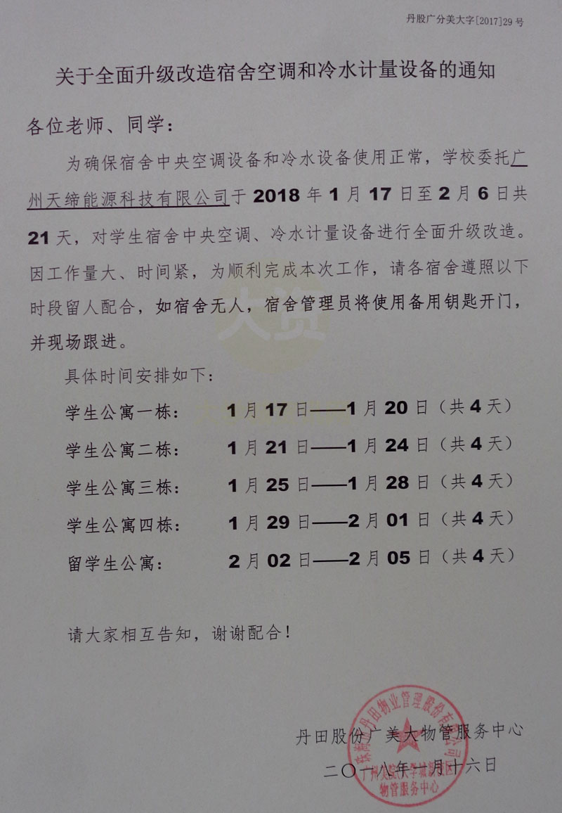 关于全面升级改造宿舍空调和冷水计量设备的通知 | ||||||