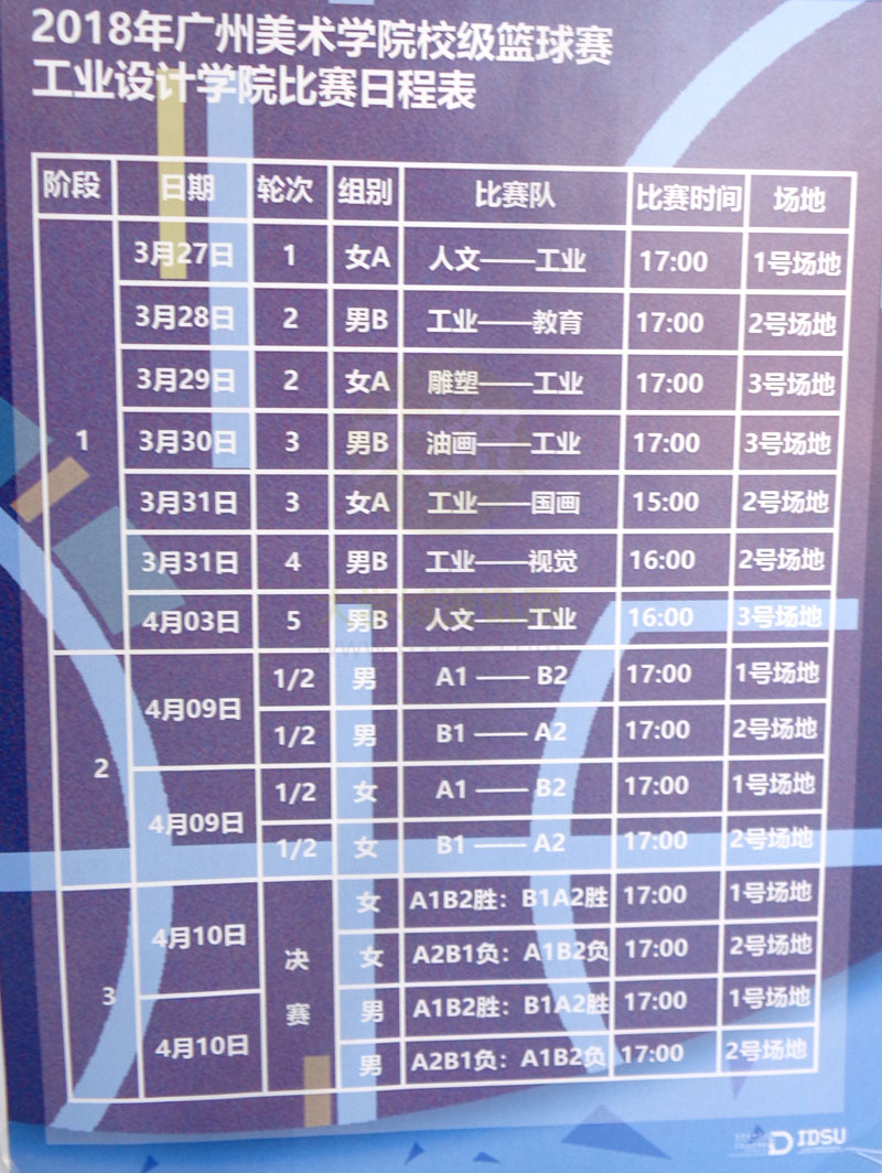 2018广州美术学院校级篮球赛工业设计学院赛程安排 | ||||||