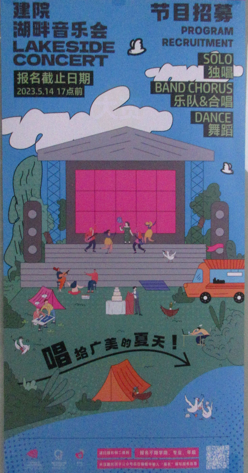 建院2023湖畔音乐会·节目招募 类型包括独唱,乐队&合唱,舞蹈等 截止报名时间2023.05.14 17点前 | ||||||