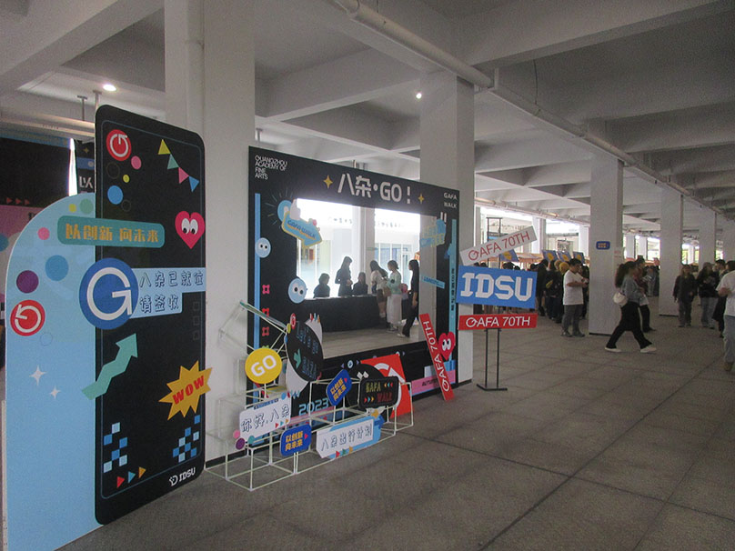 一年一度的广美八杂街今天开摊 2023.11.29周三 生活区1&2栋间首层通道 中午时分时段,现场大多数铺位都比较热闹 走看问玩都不少人 同时还间插一些游戏互动摊位,吸引参与热情人气 相当多摊位都主要卖一些手工艺品&手作&首饰&人体佩戴装饰物等 同时也有一些画作及展览展示形式/呈现