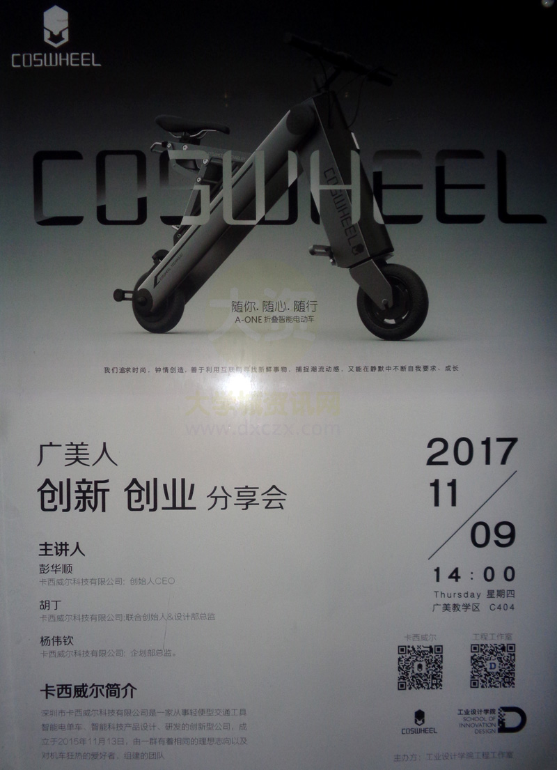 卡西威尔 广美人 创新 创业 分享会 2017/11/09 14:00星期四 教学区C404 | ||||||