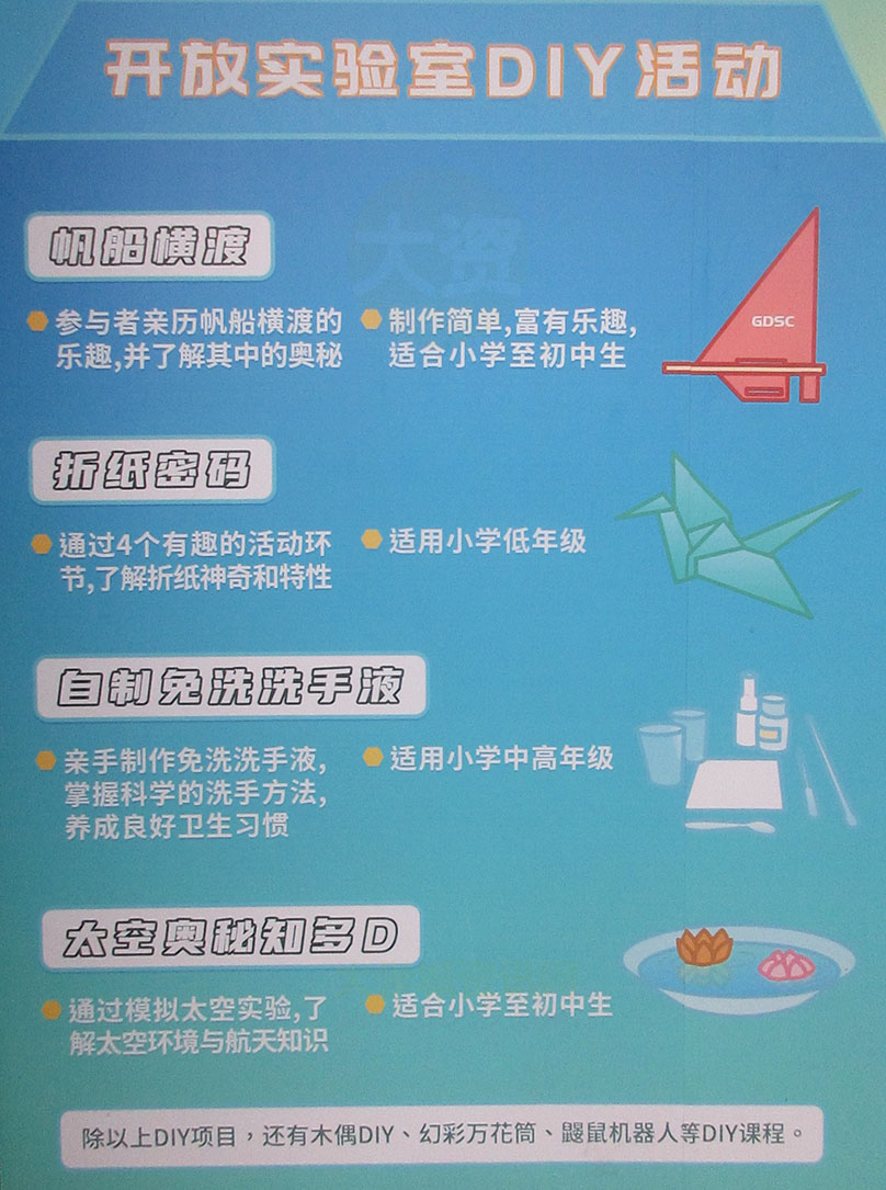 广东科学中心·开放实验室DIY活动-帆船横渡 折纸密码 自制免洗洗手液 太空奥秘知多D | ||||||