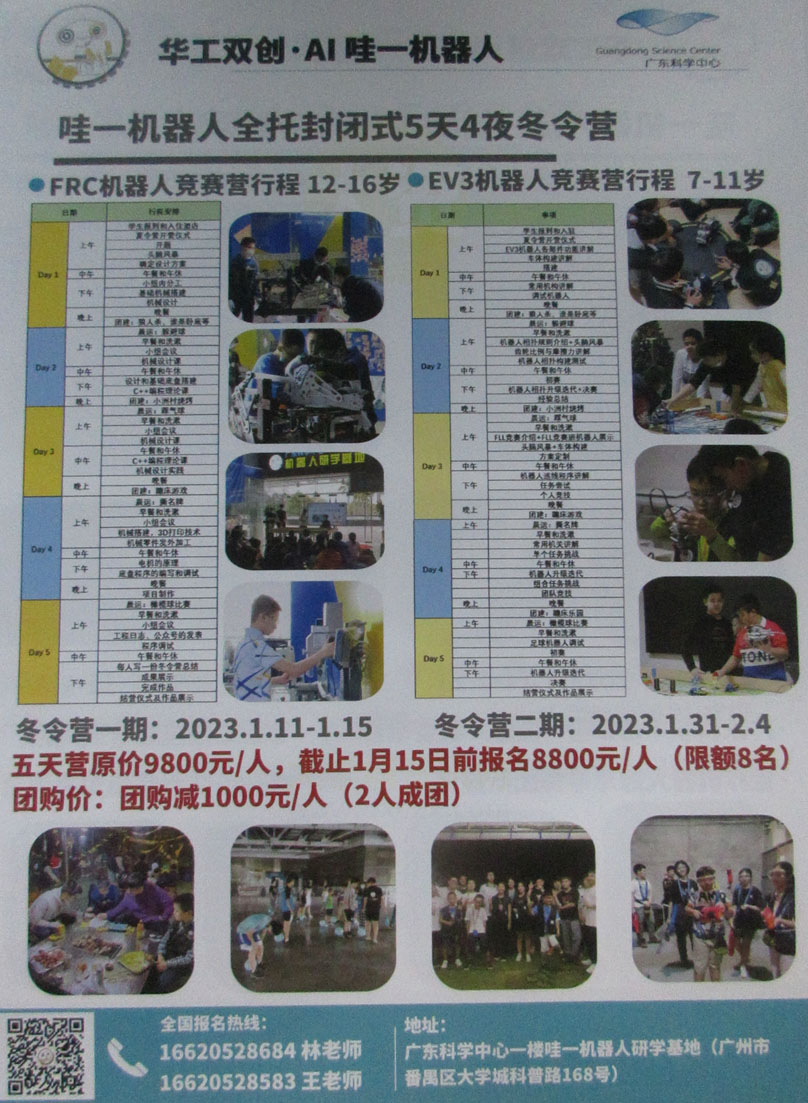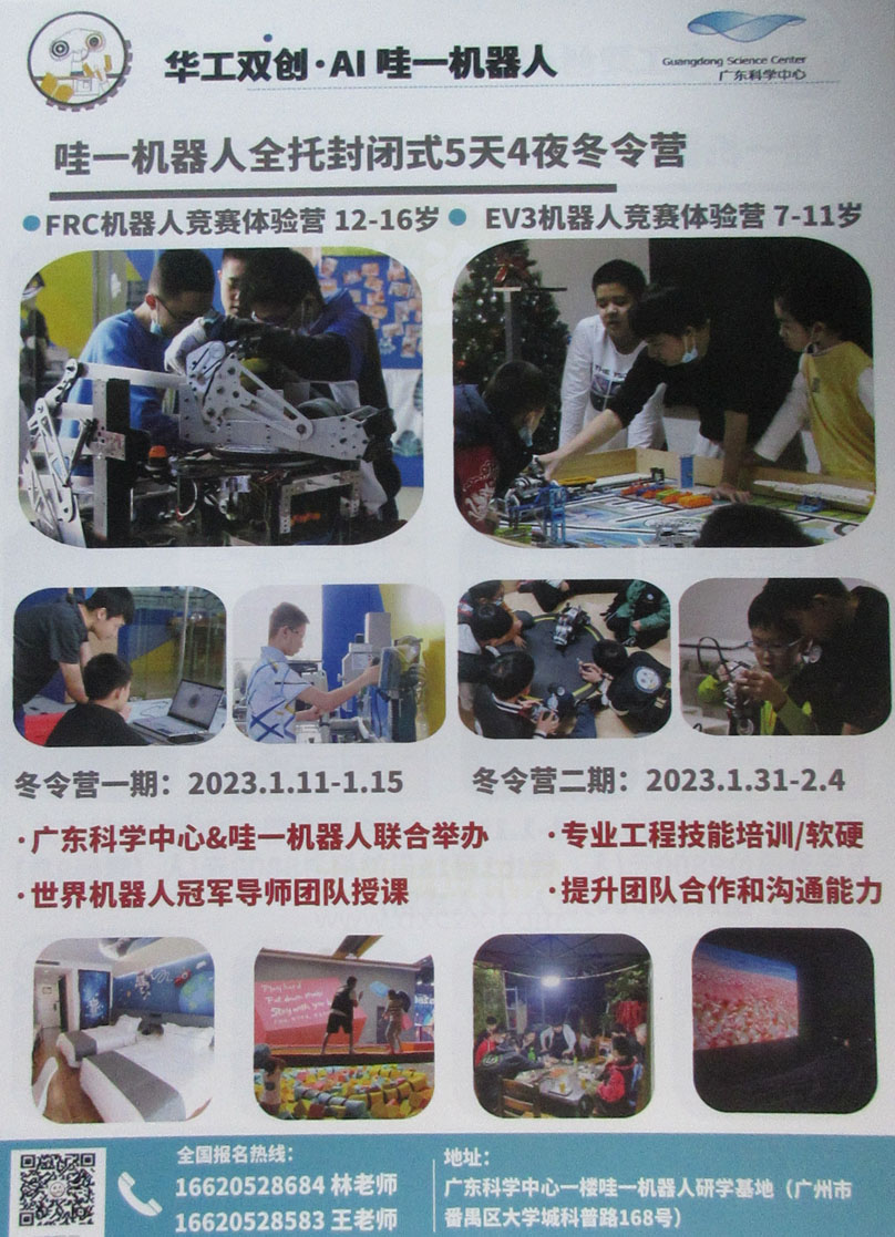 广东科学中心&哇一机器人联合举办-全托封闭式5天4夜冬令营活动 报名正在进行中 | ||||||