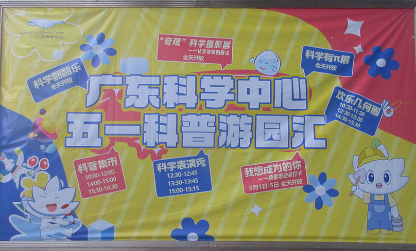 广东科学中心五一科普游园汇 活动时间5.1-5.5 具体场地-科学中心内绿化中庭 具体玩看展项目-科学翻翻乐 奇观科学摄影展 科学有π展 欢乐几何圈 我想成为的你 科学表演秀 科普集市