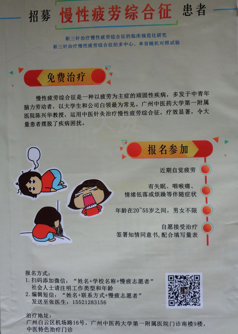 招募慢性疲劳综合征患者免费治疗 | ||||||