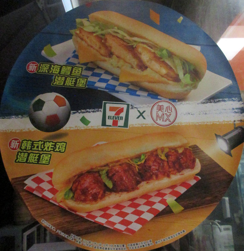 广大商中D区中横座东北角 711便利店 新供应:深海鳕鱼潜艇堡&韩式炸鸡潜艇堡 时间11.21-12.18 | ||||||