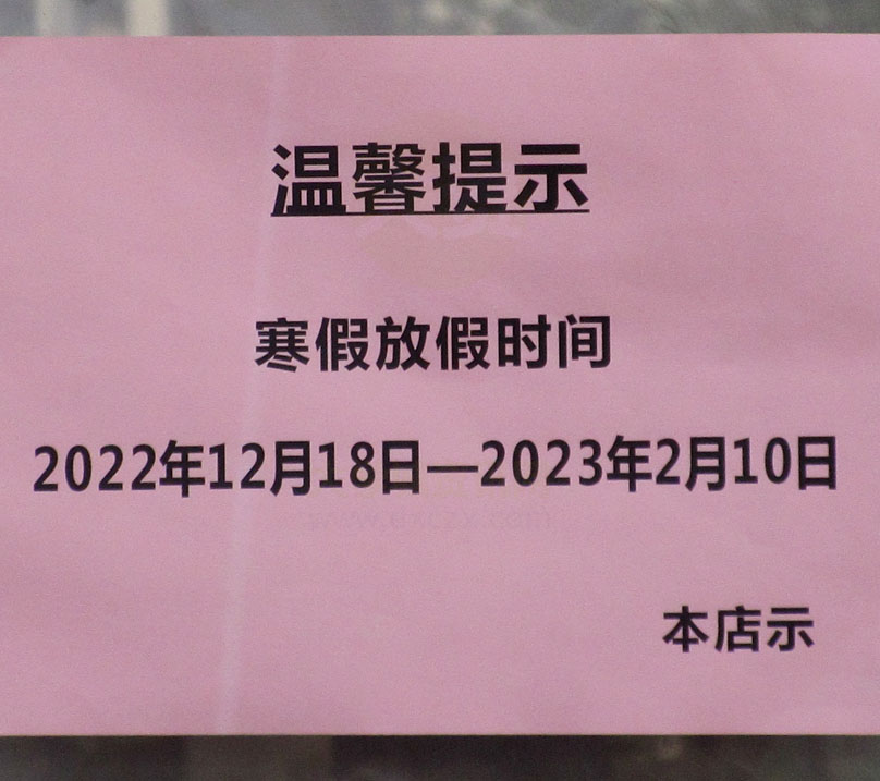 广大商中A区北横座东北角 711便利店 寒假放假时间2022年12月18日-2023年2月10日