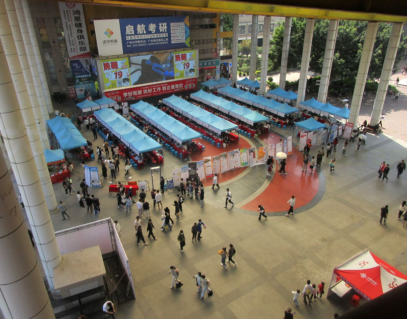 广大商中中庭广场上午开始的招聘会 目前已经进行到中午 现场见到似乎应聘者不算多 广大也是昨天才开始第一批学生返校 | ||||||