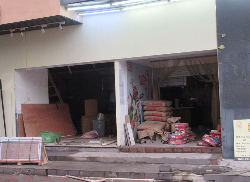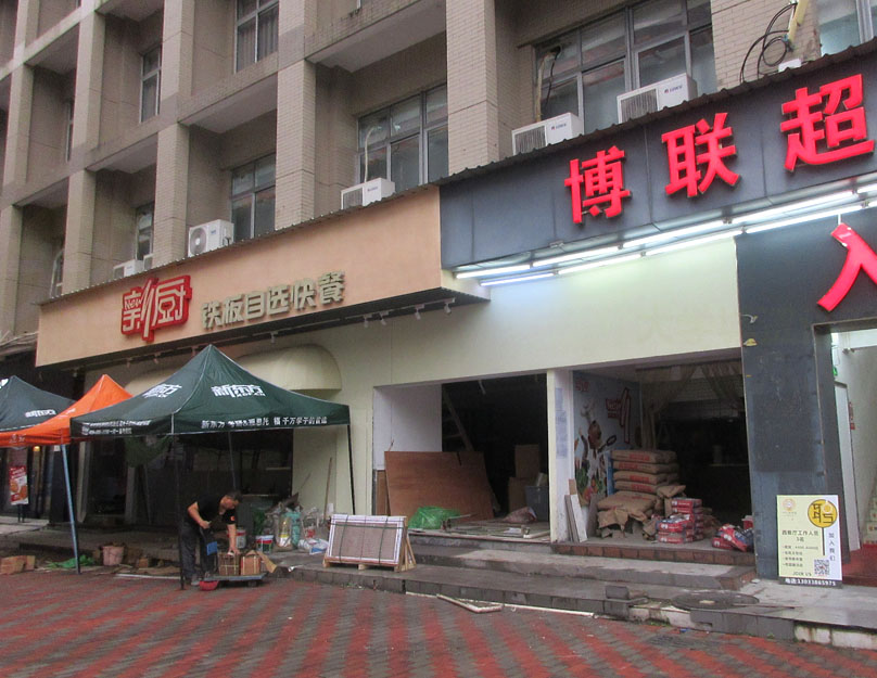 广大商中A区北横座一楼 新厨板烧自选快餐店新学期没怎么见有开 目前看到似在进行重装修 西南角的230咖啡也没开了