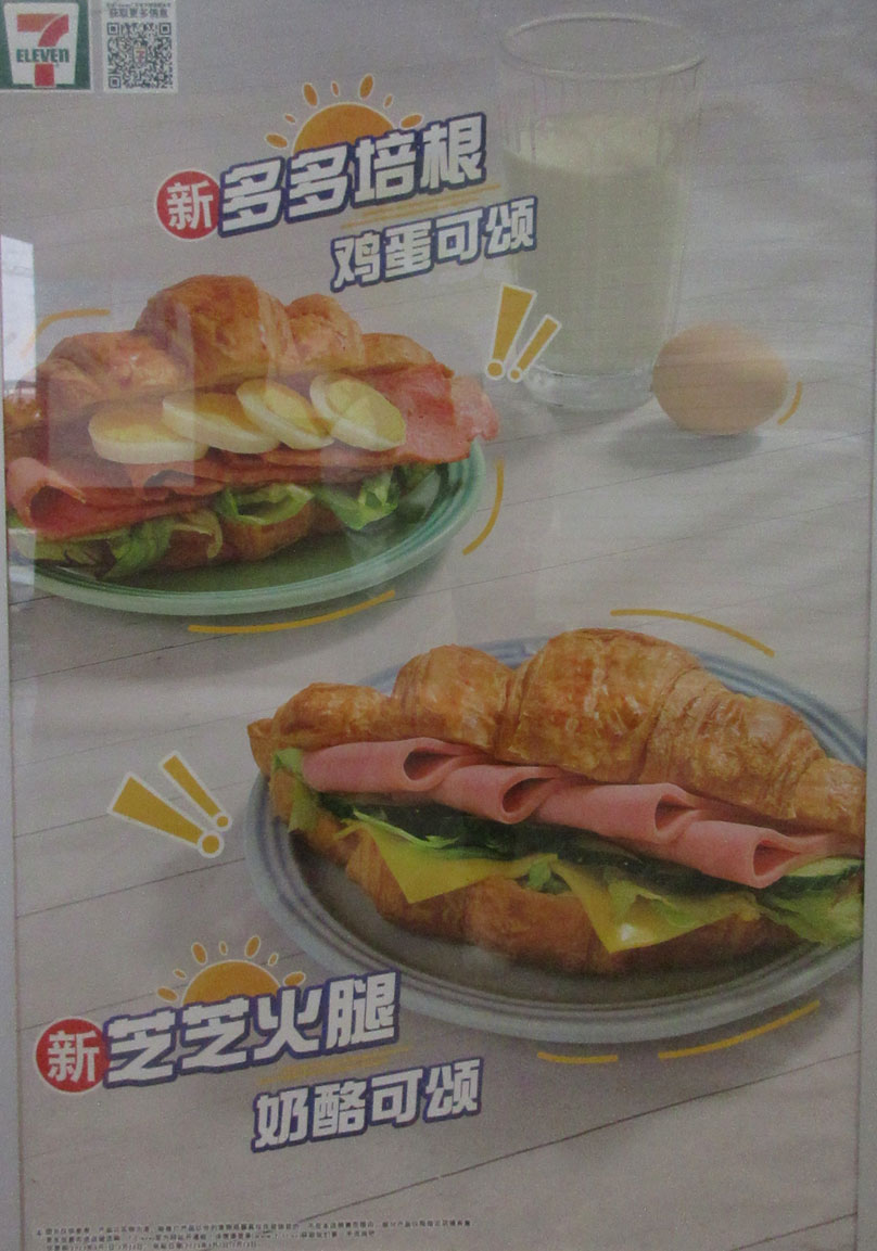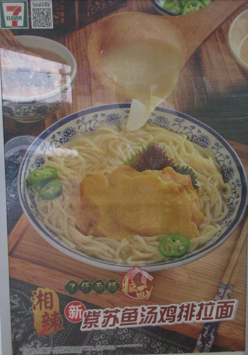 广大商中A区西门711便利店 近期新品 紫苏鱼汤鸡排拉面 多多培根鸡蛋可颂 芝芝火腿奶酪可颂 | ||||||