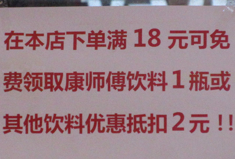 广大商中A区中横座南列中 杨国福麻辣烫 下单满18元可免费领取康师傅饮料1瓶或其它饮料优惠抵扣2元