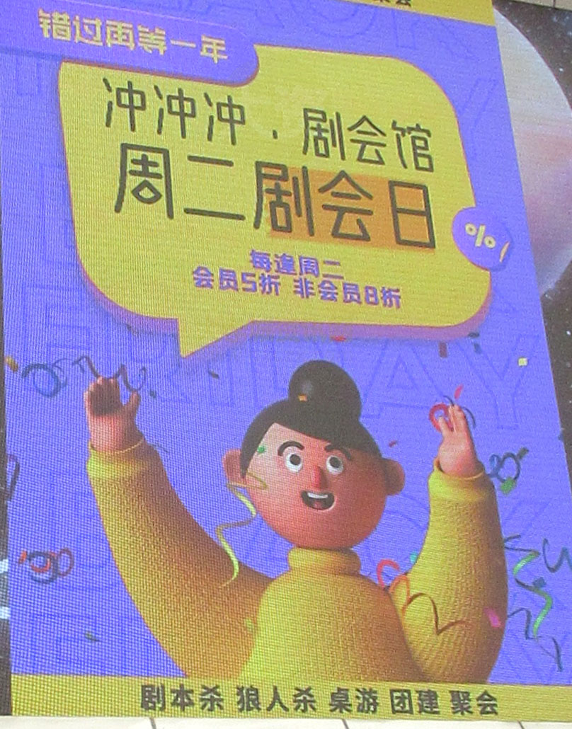 商中D区二楼西廊道北段 冲冲冲剧会馆 周二剧会日 每逢周二会员5折 非会员8折 剧本杀 狼人杀 桌游 团建 剧会等 | ||||||