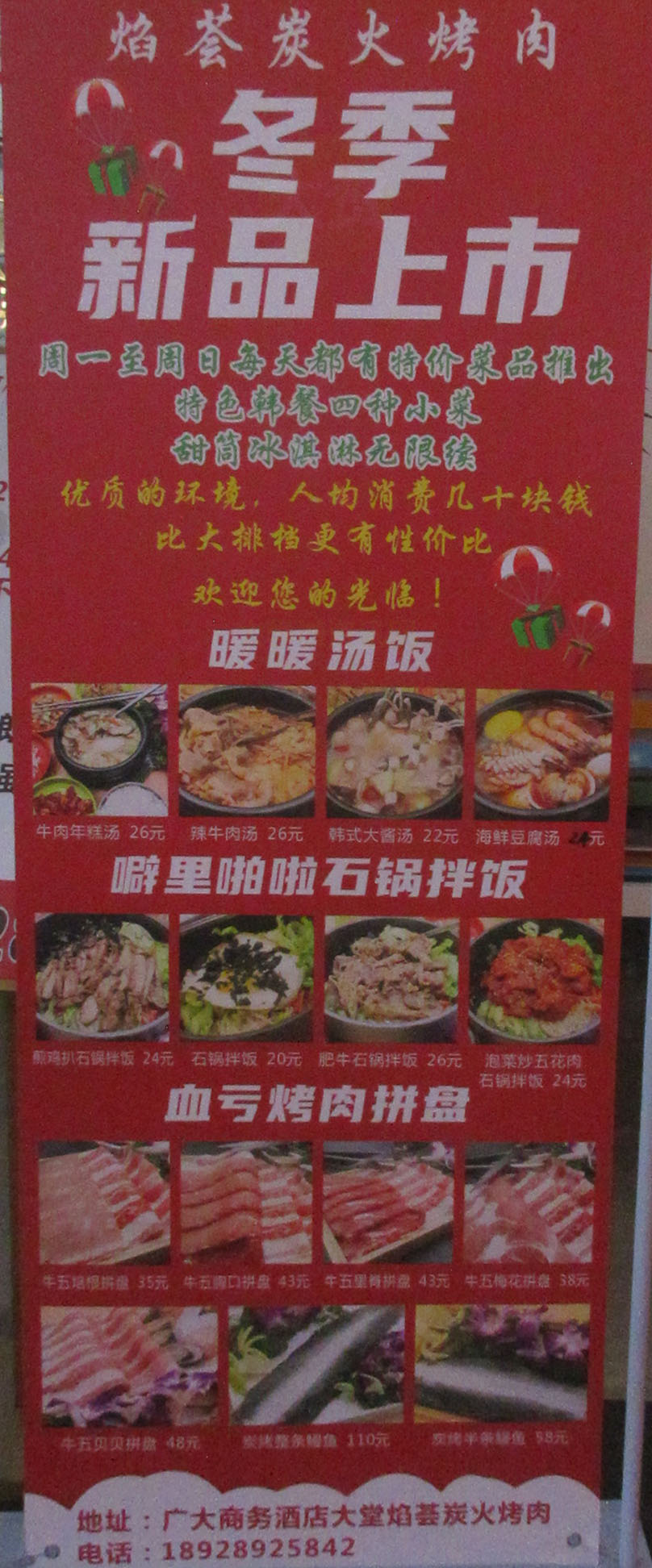 广大商中A区&酒店大堂北侧 焰荟炭火烤肉 冬季新品上市 暖暖汤饭 石锅拌饭 烤肉拼盘 | ||||||
