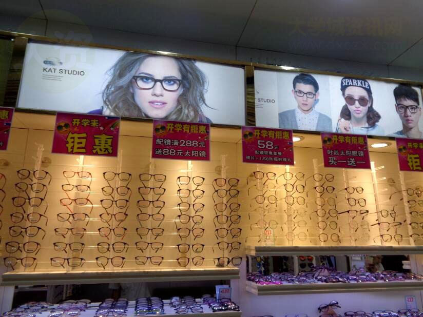 D区一楼西廊道南可光眼镜开学来钜惠:配镜满288元送88元太阳镜 58元配镜钜惠套餐镜片+1.56防 | ||||||