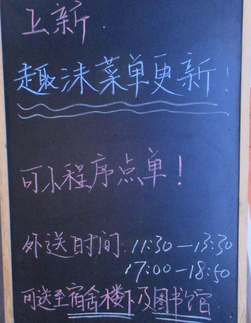 广大商中A区酒店大堂东南廊道 趣沫菜单更新 可小程序点单 外送时间11点30-13点30 17点-18点50 可送至宿舍楼下及图书馆 | ||||||