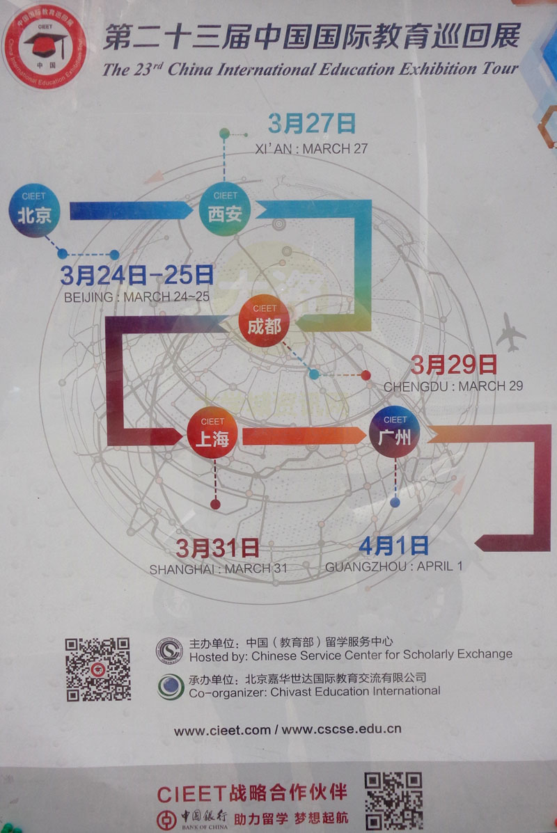 第二十三届中国国际教育巡回展4月1日将来到广州(最后一站)