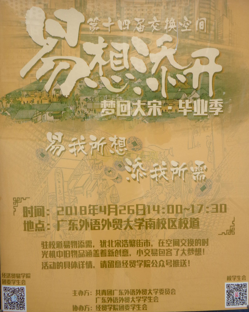 【易想添开】第十四届交换空间 2018年4月26日14:00-17:30 生活区主干道中段 | ||||||