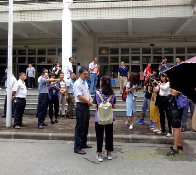 新生报到现场 广外书记隋广军校长正在接受新闻社记者采访
