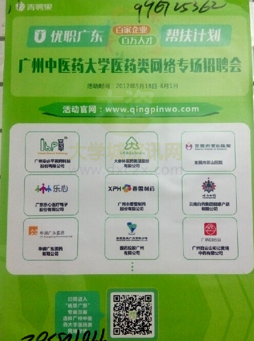 广州中医药大学医药类网络专场招聘会 活动时间:2017年5月18日-6月1日