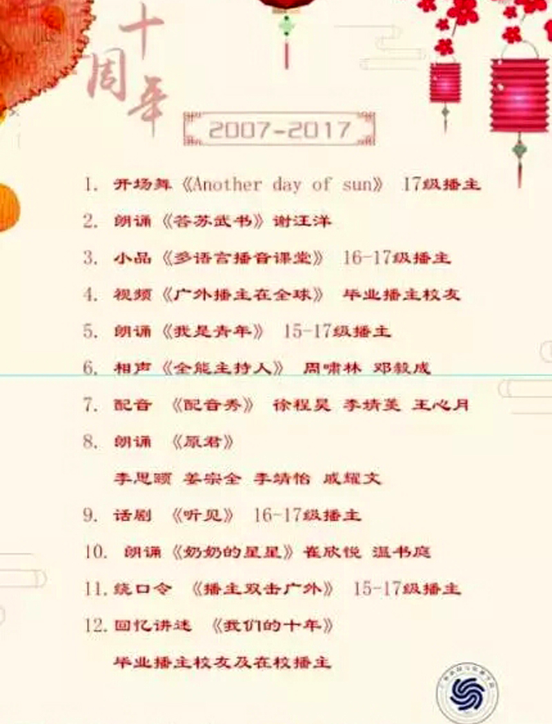广外播主十周年播主汇演 12.09 19:00 B8 开SHOW