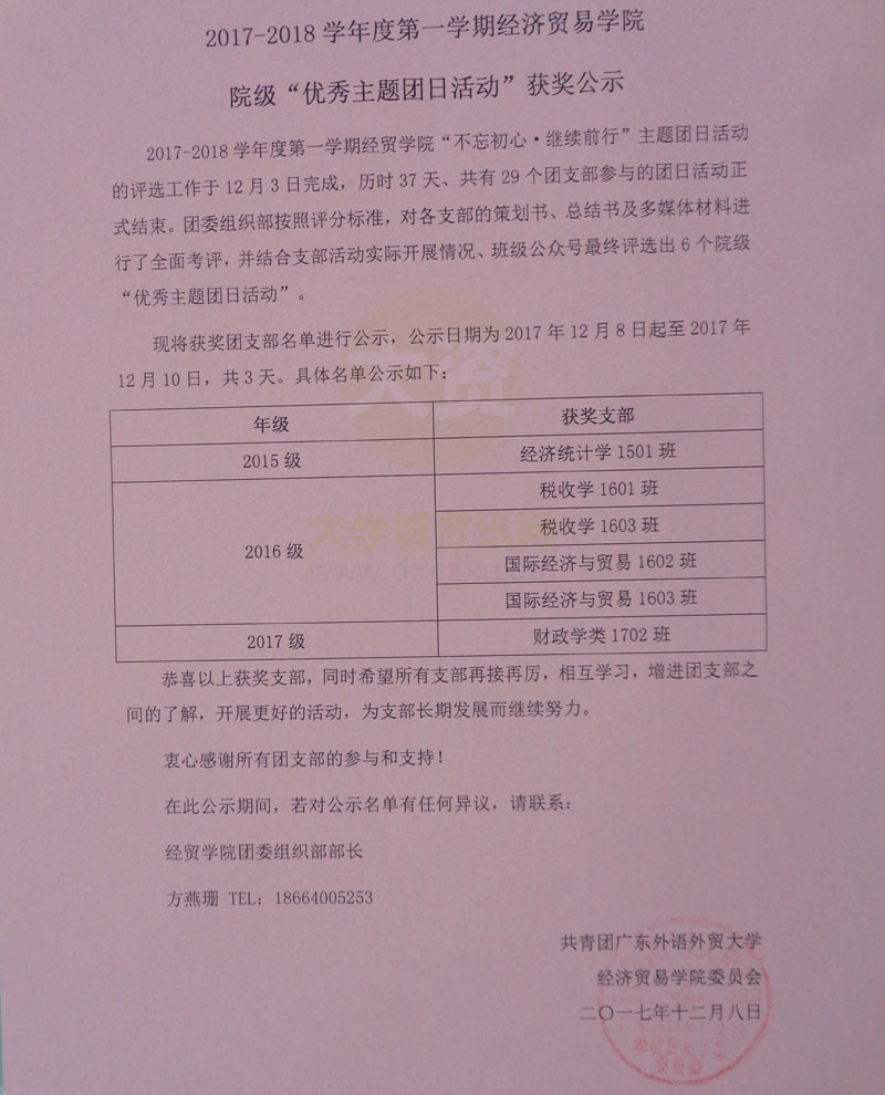 2017-2018学年度第一学期经济贸易学院院级“优秀主题团日活动”获奖公示 | ||||||