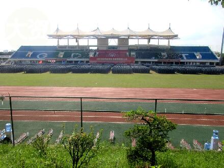 23级新生军训检阅总结大会今下午在中心田径场展开进行