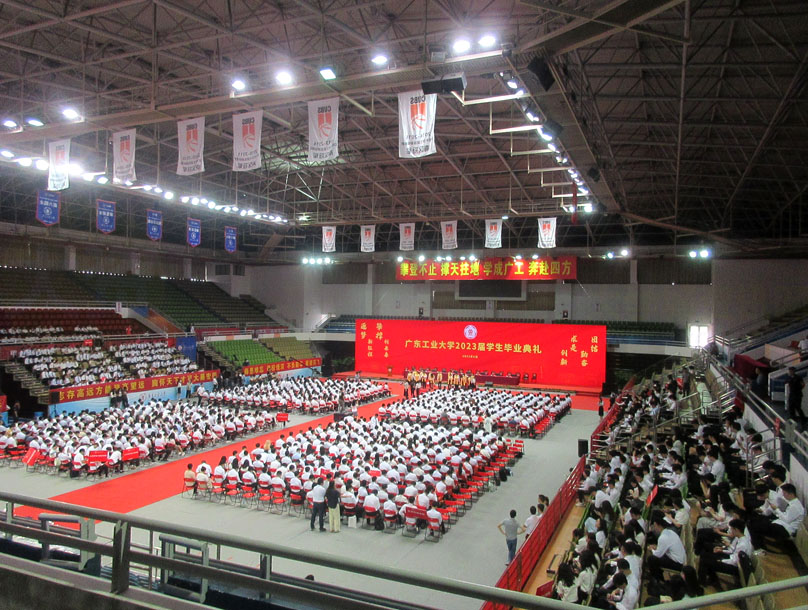 广东工业大学2023届学生毕业典礼即将在稍后10点开始 在大学城校区体育馆进行