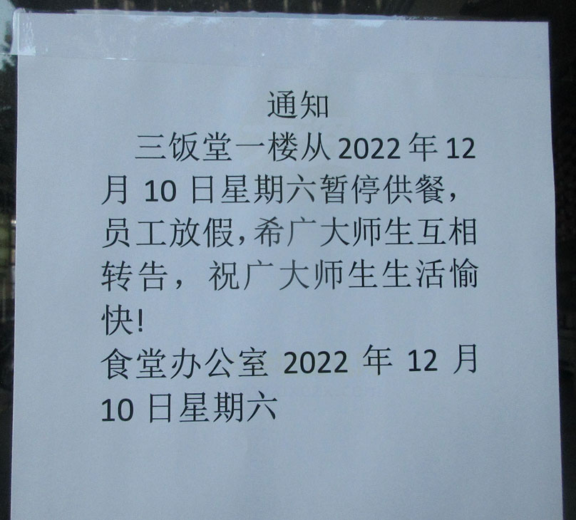 西区三饭一楼2022年12月10日起放假暂停供餐 | ||||||