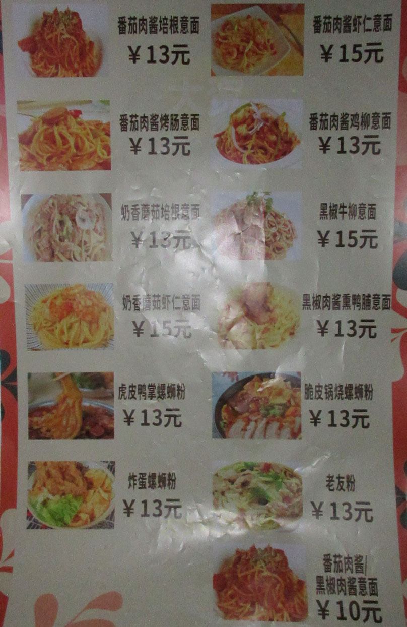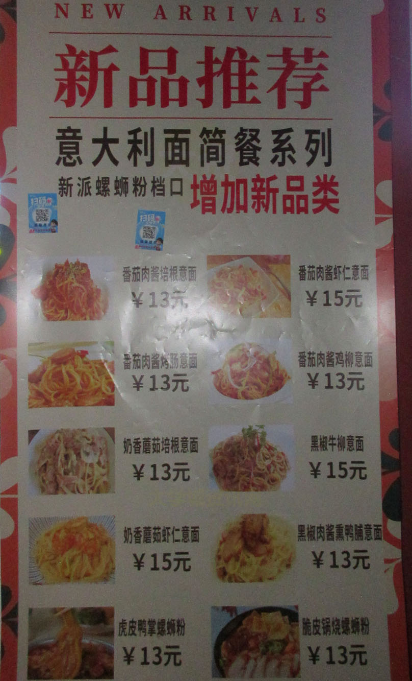 广工一饭一楼南列 新派螺蛳粉档 新增意大利面简餐品类 | ||||||