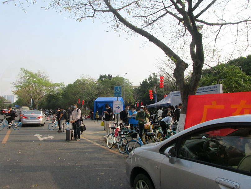 大学城广工明天上中午将作为考场进行广东省2023年公务员录用考试 教学区东门外现场踩点看考场试室等的考生还是比较有的