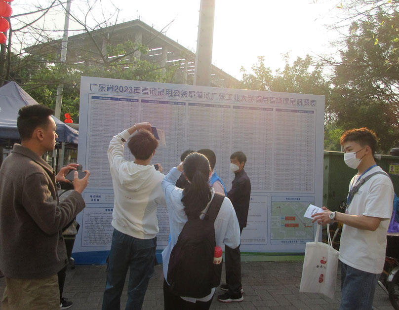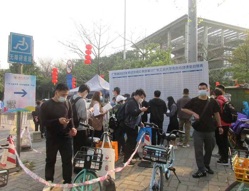 大学城广工明天上中午将作为考场进行广东省2023年公务员录用考试 教学区东门外现场踩点看考场试室等的考生还是比较有的 | ||||||