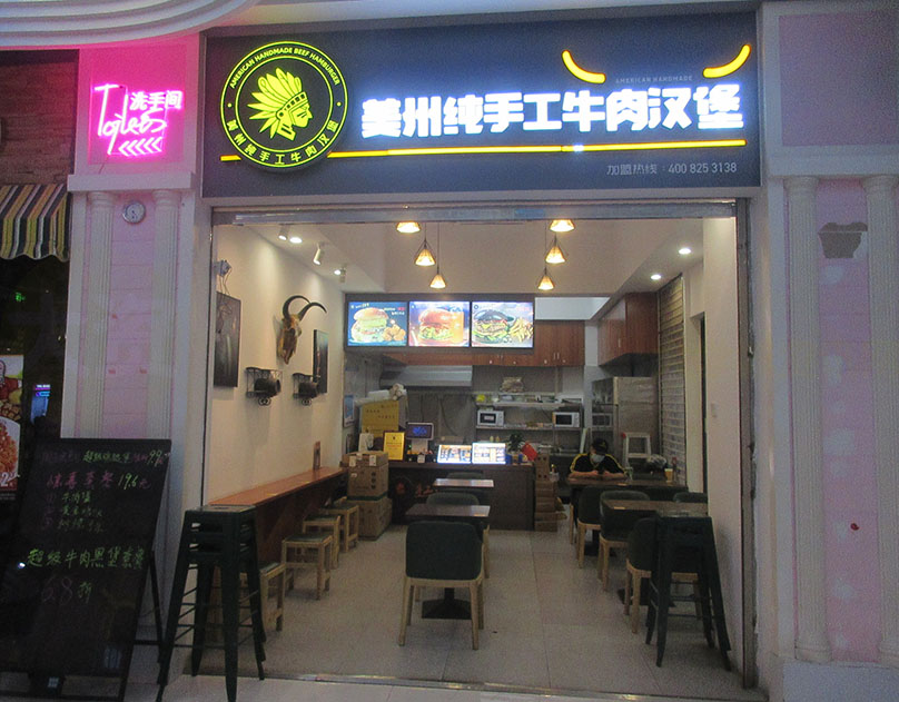 新天地二期二楼西内廊道北 美州纯手工牛肉汉堡 周五会员日-超级鸡腿堡限时9.9元 惊喜套餐-牛肉堡&黄金鸡块&柠檬可乐=19.6元 超级牛肉黑堡套餐6.8折