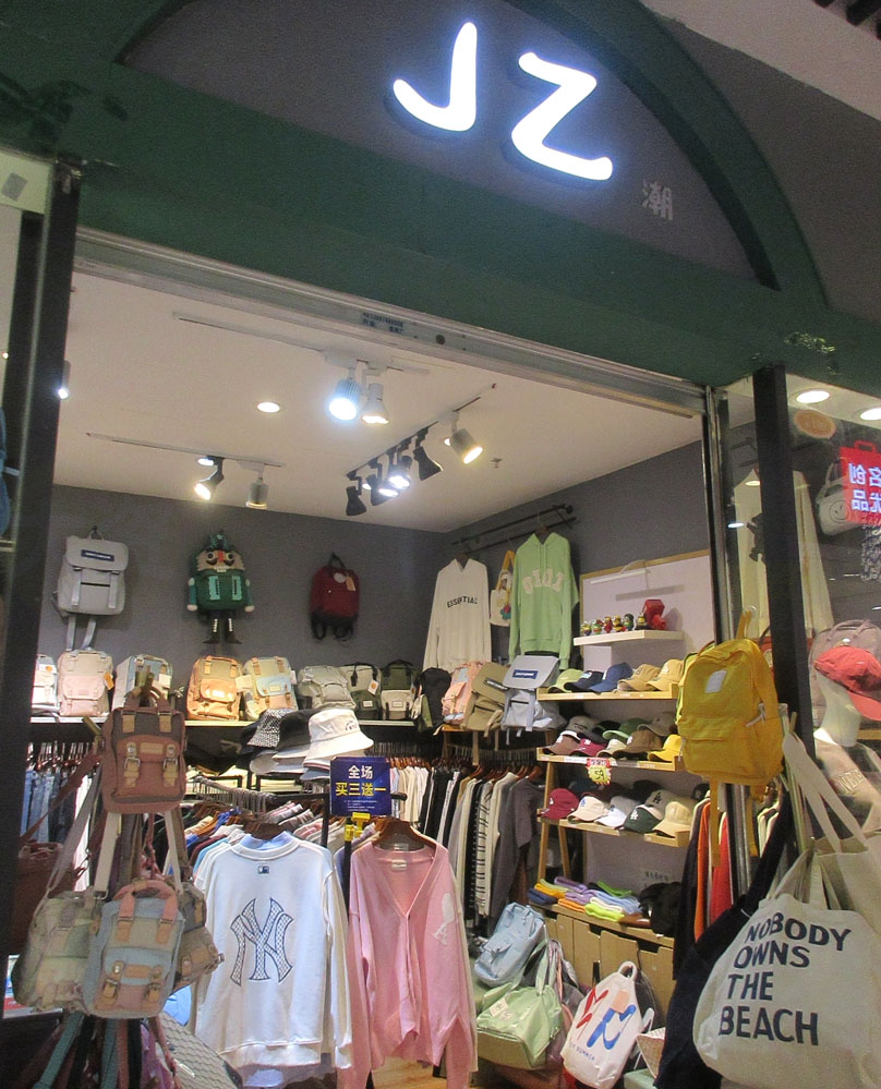 新天地一楼内东廊道中 名创优品对面 JZ潮 全场买三送一 买三包括衣服鞋子包包帽子帆布袋等 送一不包括鞋子 即四件商品中价高者结算,价低者免单 | ||||||