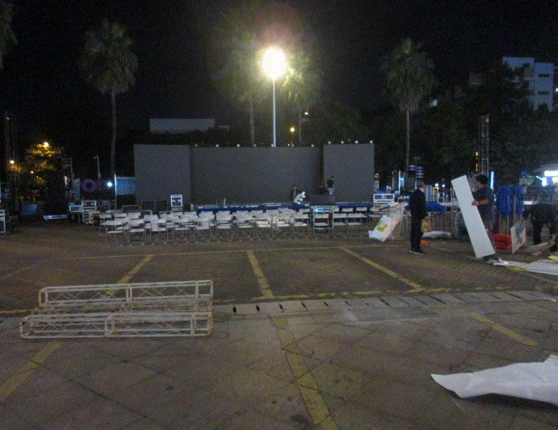 新天地似乎本学期比较少活动啊 今晚看到说正门西广场有个 2023广州大学生迎新节目评选大赛总决赛 将于明晚进行 目前正在布场ing