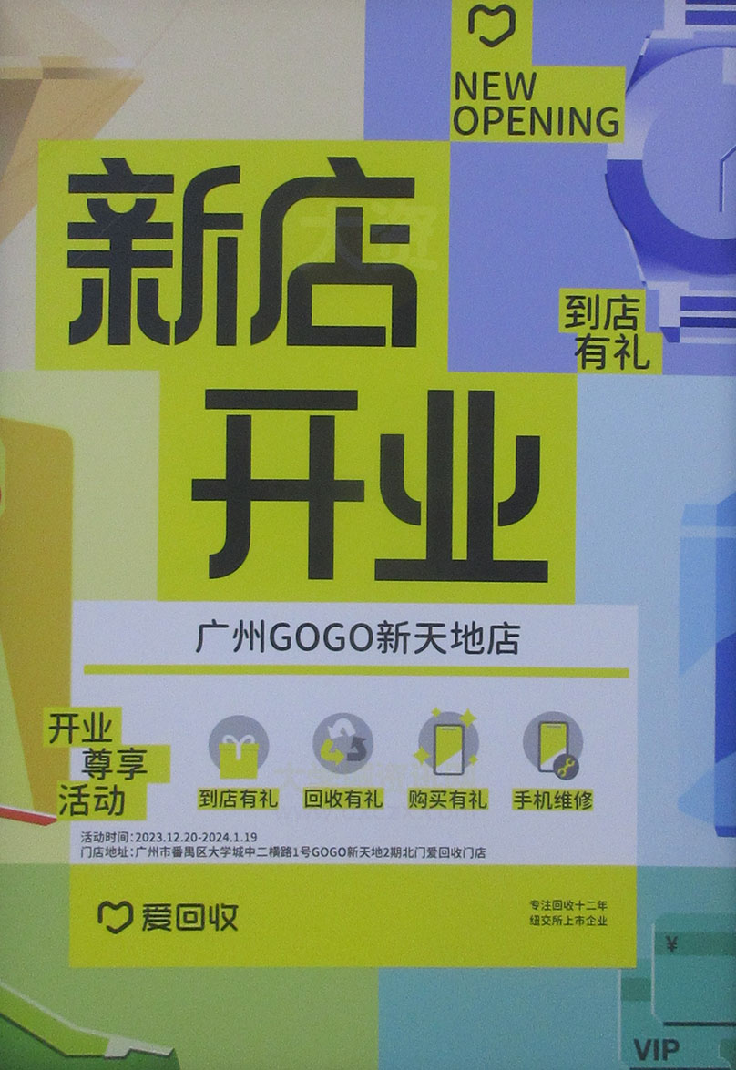 新天地二期二楼北 半个月前说看到原先的荒岛花艺搬走没开后 很快/今天就看到原位新开了家叫爱回收的二手收购售卖店