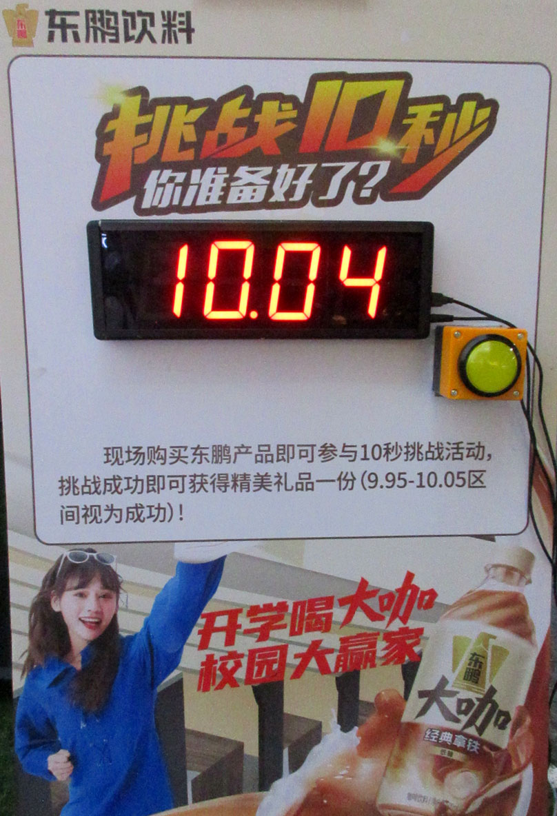 东鹏特饮宣传推广活动 新天地正门 扫码支付1毛钱即可买东鹏产品1支 同时组合购买还可送收纳盒一个 以及其它挑战送礼品 | ||||||