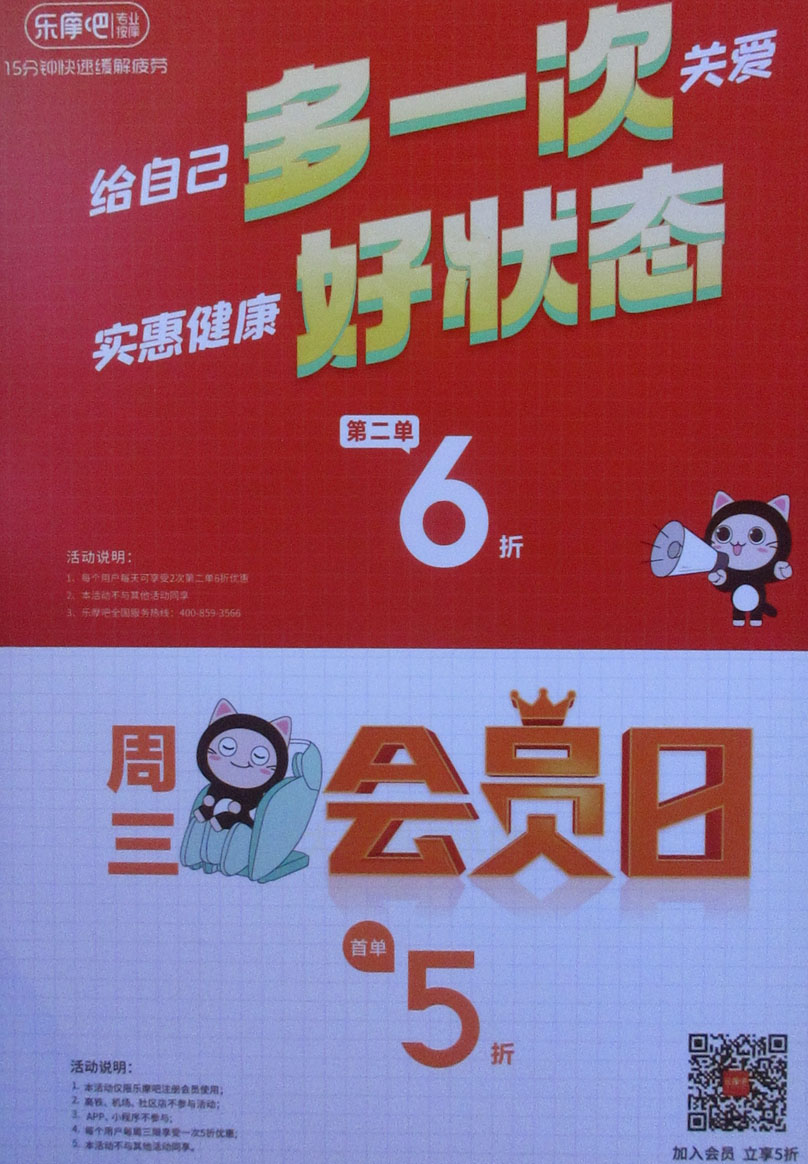 新天地二期一楼南东侧 乐摩吧自动按摩椅 周三会员日 首单5折 第二单6折 | ||||||